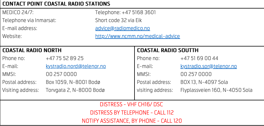 • Coast Radio Contact Information
