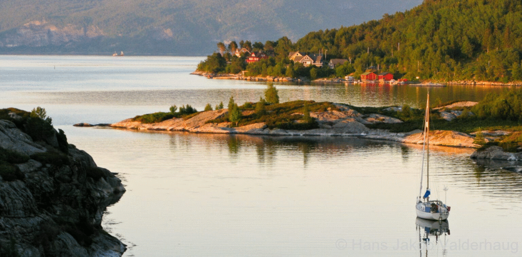 East of Lindesnes, Norway’s southernmost point, the scenery is one of soft rounded hills covered with deciduous forest. The coast is protected by off-lying islands and almost the entire coast can be navigated inside the skjærgård (off-lying skerries).
