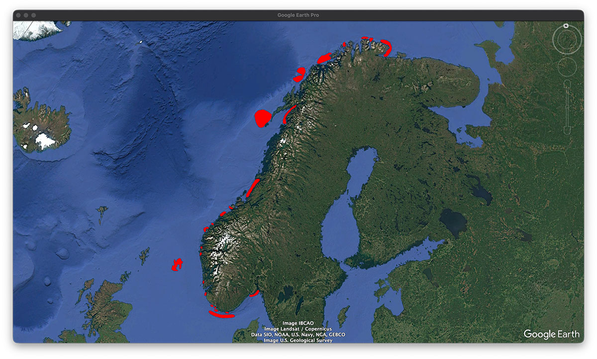 You will come across Coastal Danger Areas throughout the Norwegian Cruising Guide. These are indicated on the chapter introduction maps of each chapter in the Guide where applicable. There is a total of 24 such areas along the Norwegian coast where dangerous waves can occur in certain weather conditions. Once downloaded into Google Earth, click into the coloured area and you will get information about the specific weather conditions when dangerous waves are more likely to happen. Now, how cool is that?